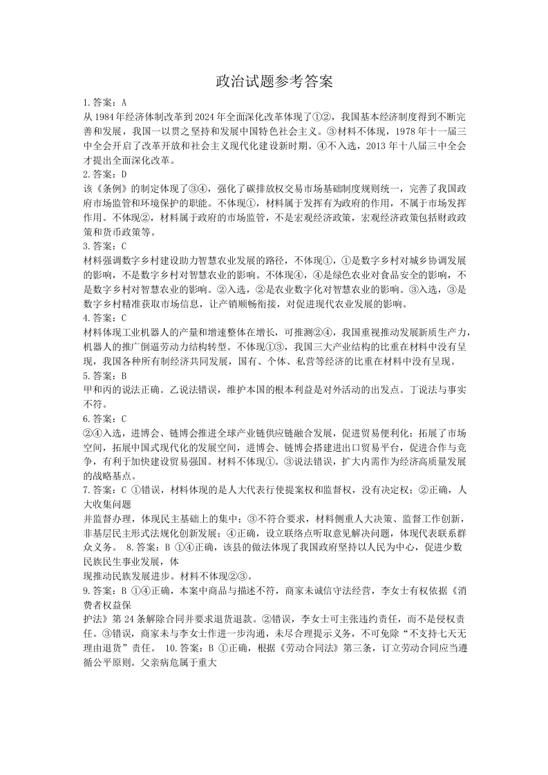 湖北省恩施2026届高三上学期9月起点考试 政治答案.docx