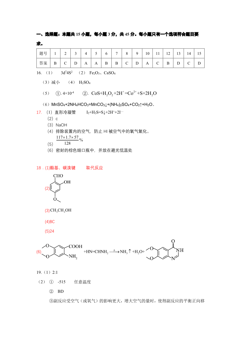 荆州市2026届高三(9月)起点考试 化学答案.pdf