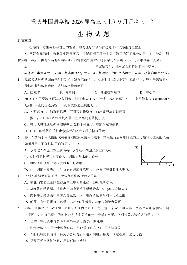 重庆外国语学校2026届高三(上)9月月考(一)生物.pdf