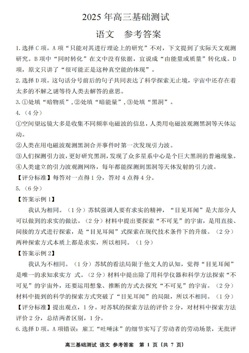 浙江省嘉兴市2025年9月高三基础测试 语文答案.pdf