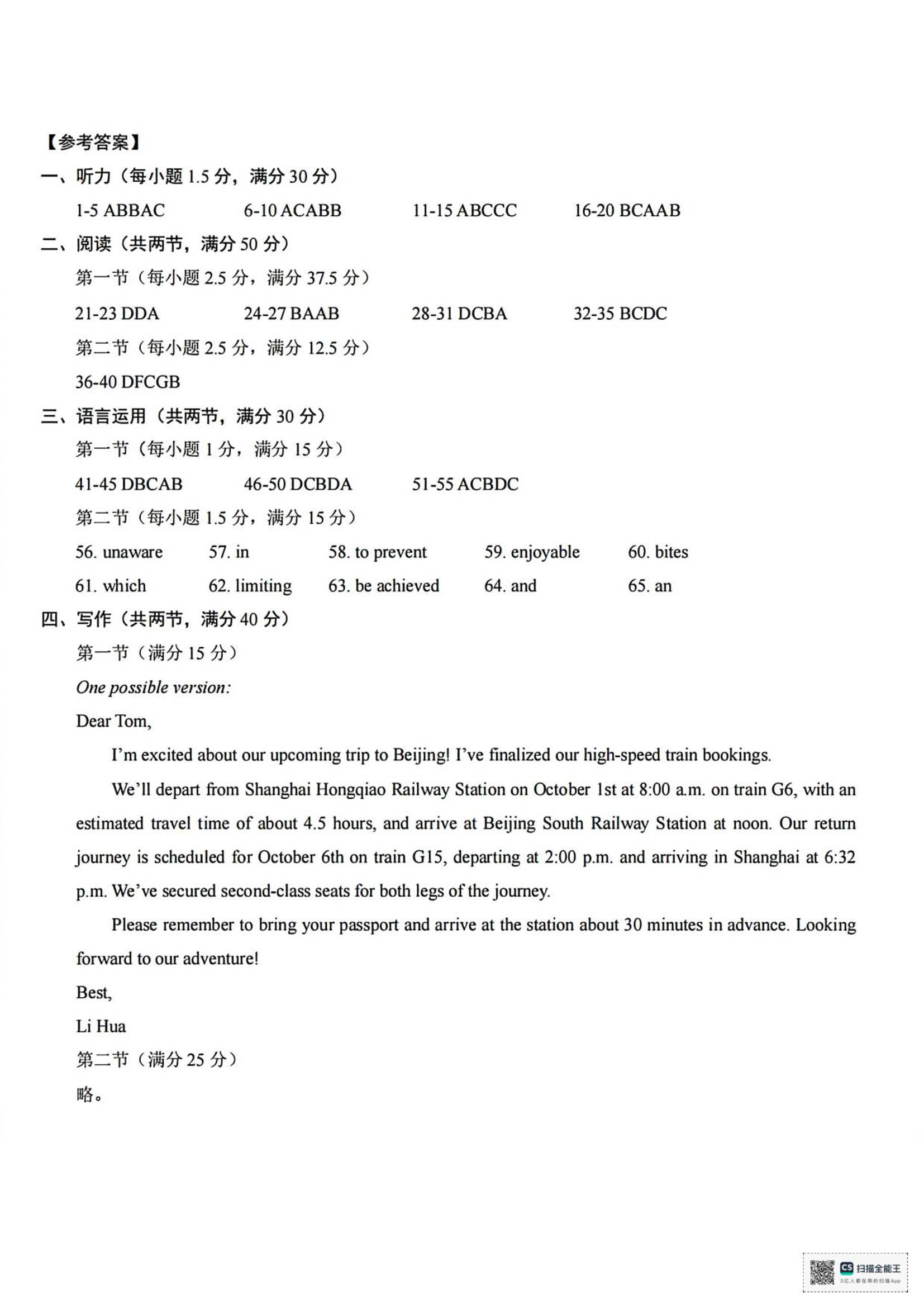 浙江省嘉兴市2025年9月高三基础测试 英语答案.pdf