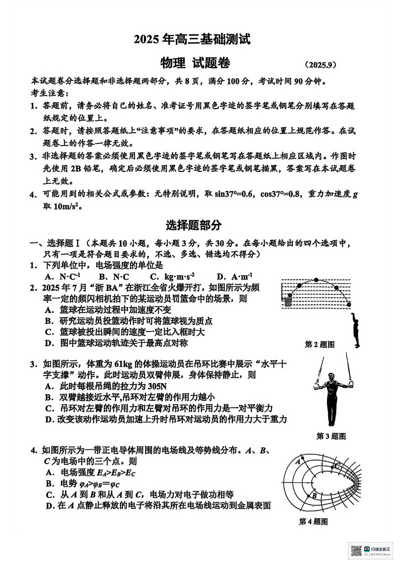 浙江省嘉兴市2025年9月高三基础测试 物理.pdf