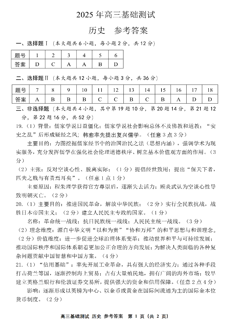 浙江省嘉兴市2025年9月高三基础测试 历史答案.pdf