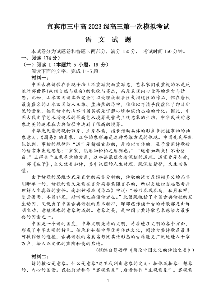 宜宾三中高2023级高三第一次模拟考试 语文.docx