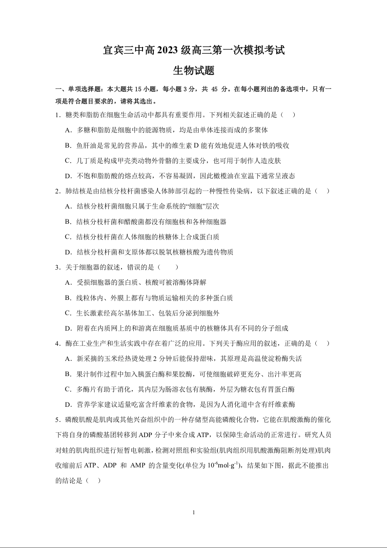 宜宾三中高2023级高三第一次模拟考试 生物.docx