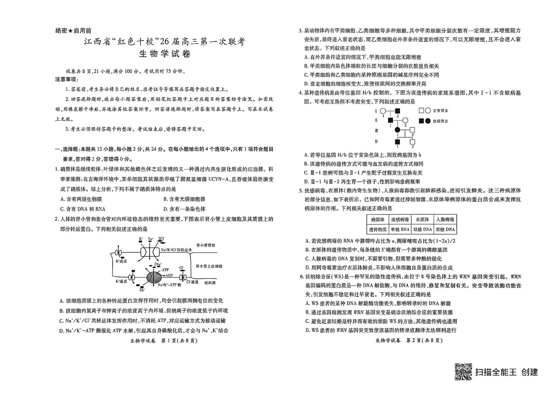 江西省“红色十校”2026届高三第一次联考 生物试卷(含答案).pdf