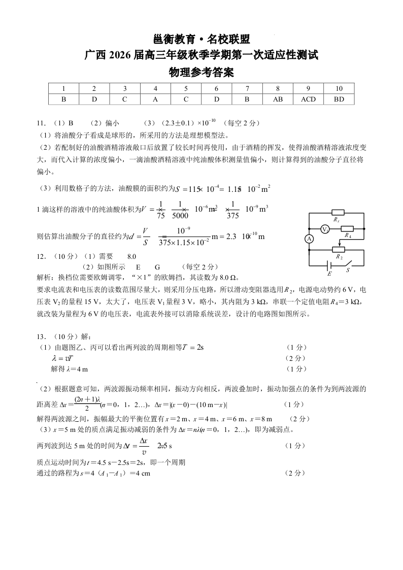 邕衡教育·名校联盟2026届高三年级秋季学期9月份联合调研测试 物理答案.pdf