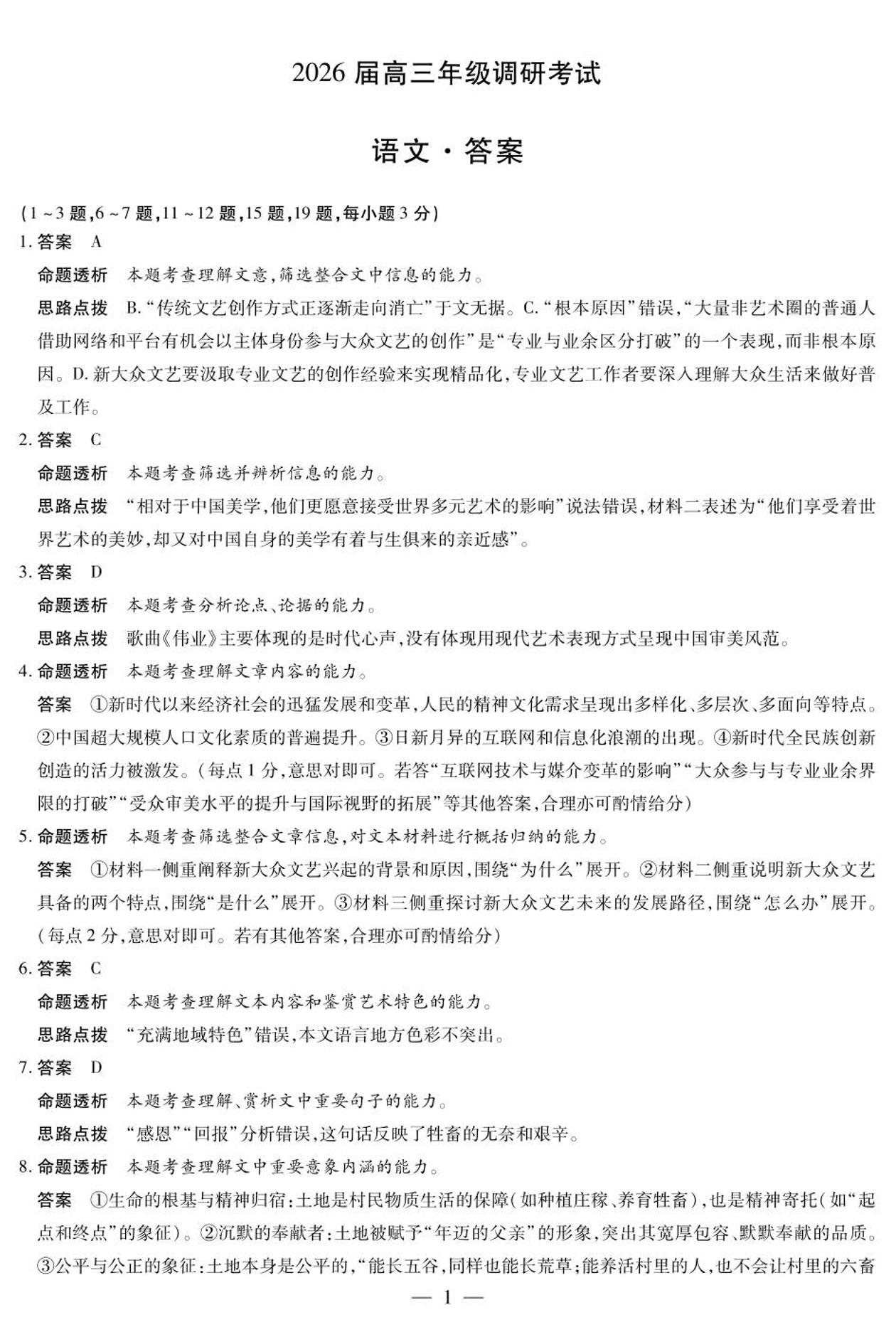 河南省·天一大联考(安阳市)2026届高三上学期调研考试 语文答案.pdf