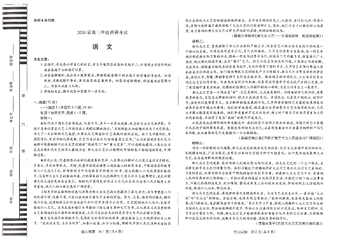 河南省·天一大联考(安阳市)2026届高三上学期调研考试 语文.pdf