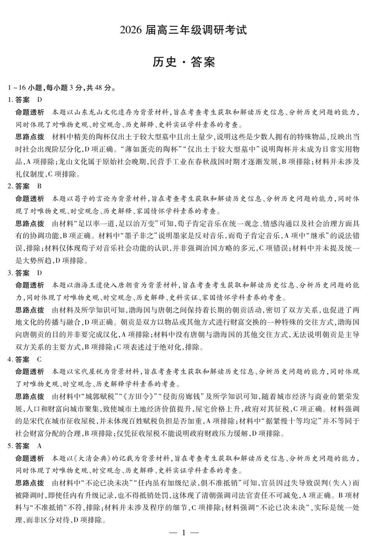 河南省·天一大联考(安阳市)2026届高三上学期调研考试 历史答案.pdf