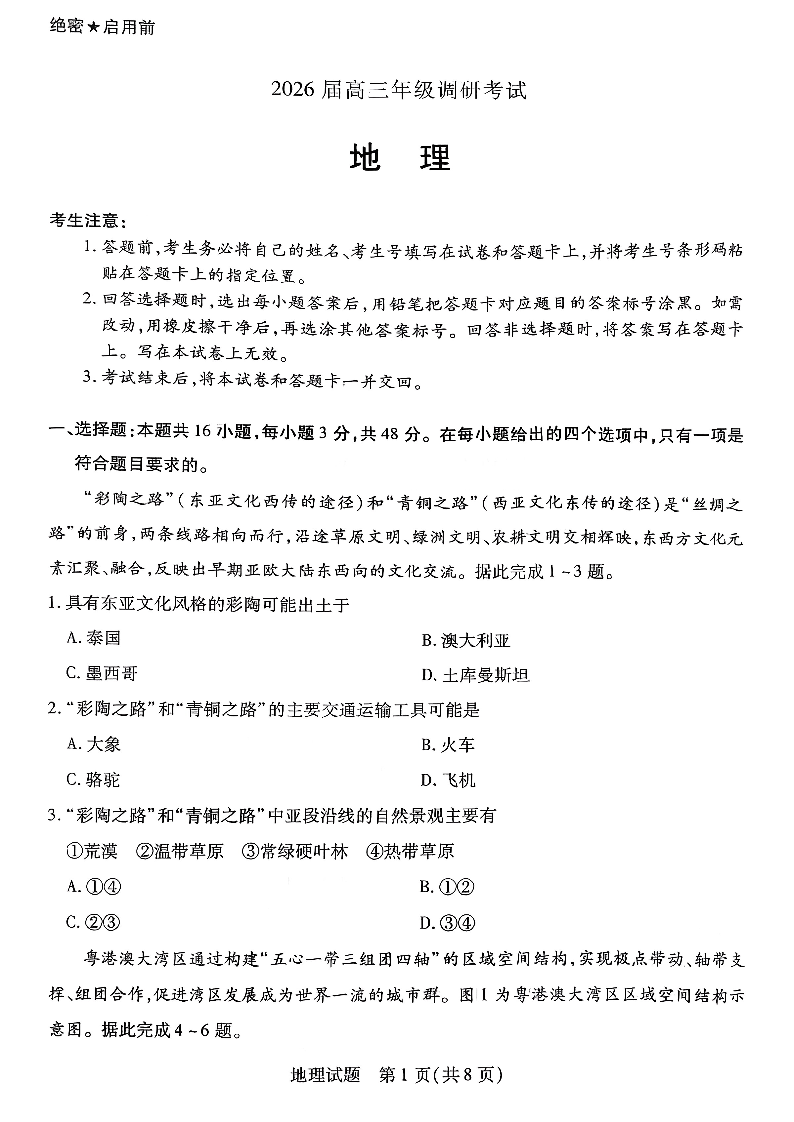 河南省·天一大联考(安阳市)2026届高三上学期调研考试 地理.pdf