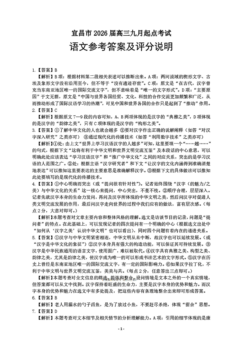 宜昌市2026届高三九月起点考试 语文答案.pdf