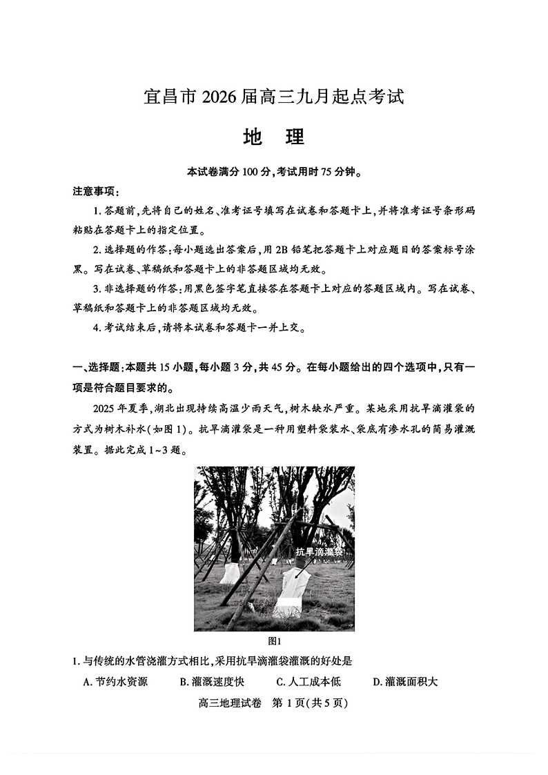 宜昌市2026届高三九月起点考试 地理答案.pdf