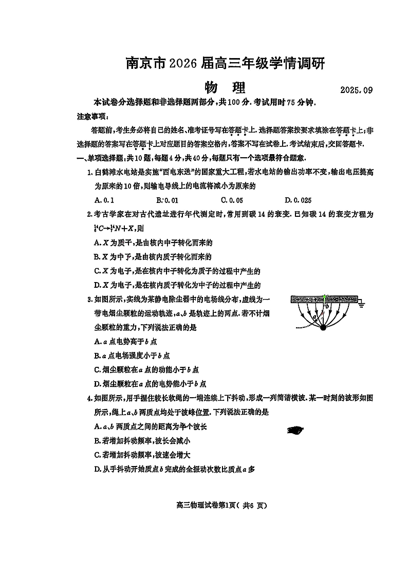 南京市2026届高三年级学情调研 物理.pdf
