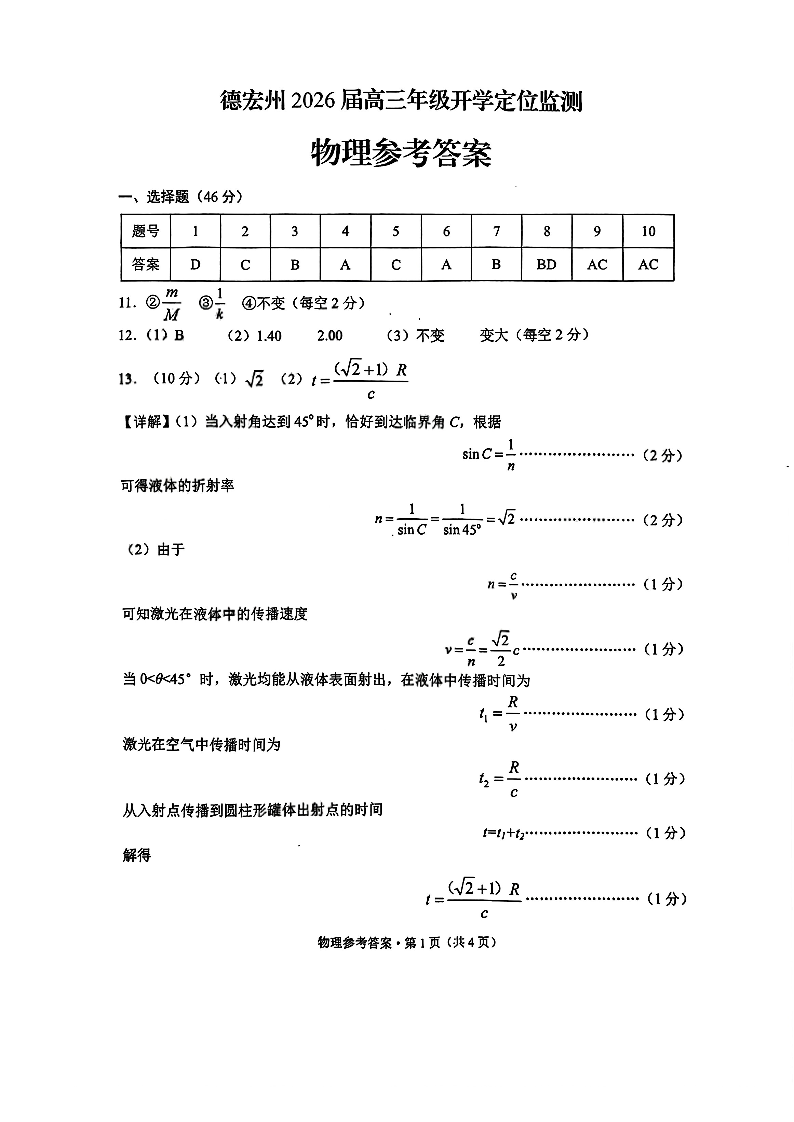 德宏州2026届高三年级开学定位监测 物理答案.pdf