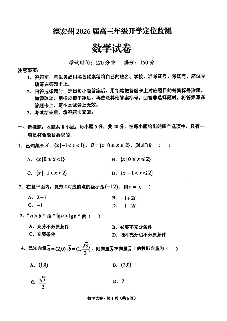 德宏州2026届高三年级开学定位监测 数学.pdf