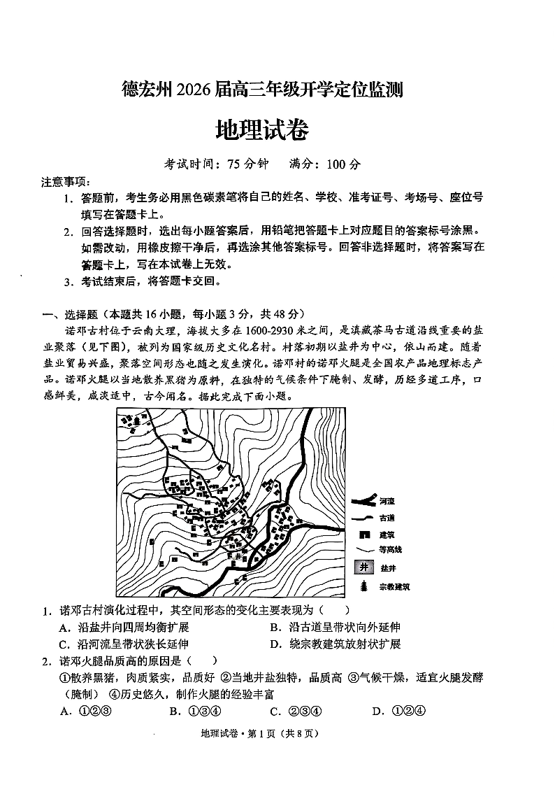 德宏州2026届高三年级开学定位监测 地理.pdf