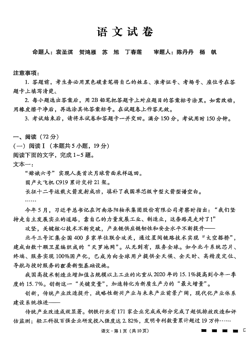 贵阳市第一中学2026届高考适应性月考卷(一)语文.pdf