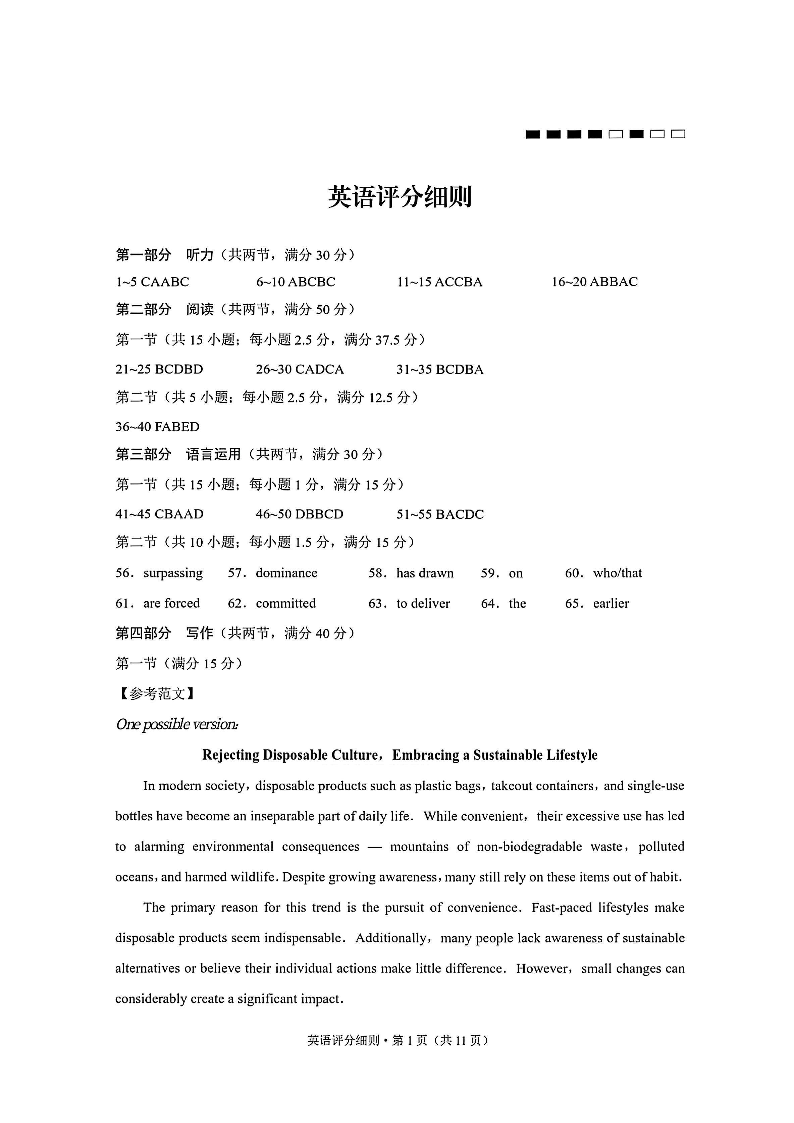 贵阳市第一中学2026届高考适应性月考卷(一)英语答案.pdf