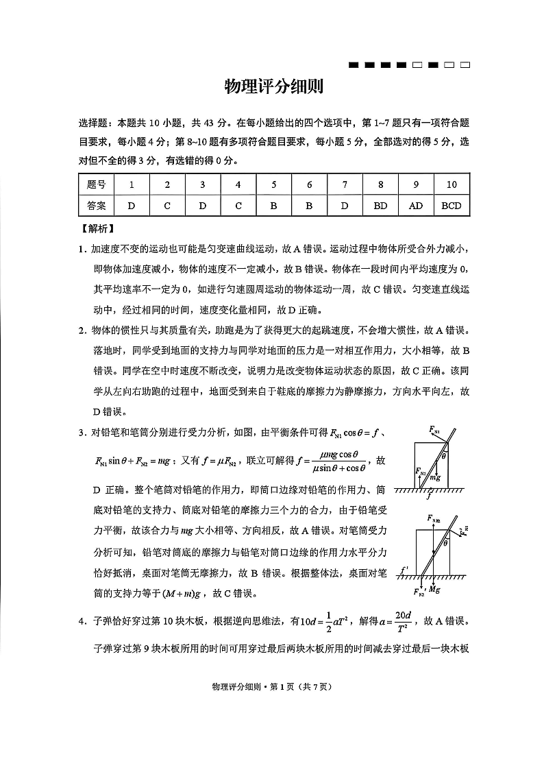 贵阳市第一中学2026届高考适应性月考卷(一)物理答案.pdf