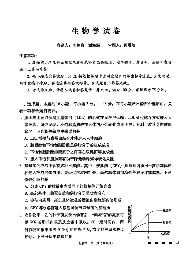 贵阳市第一中学2026届高考适应性月考卷(一)生物.pdf