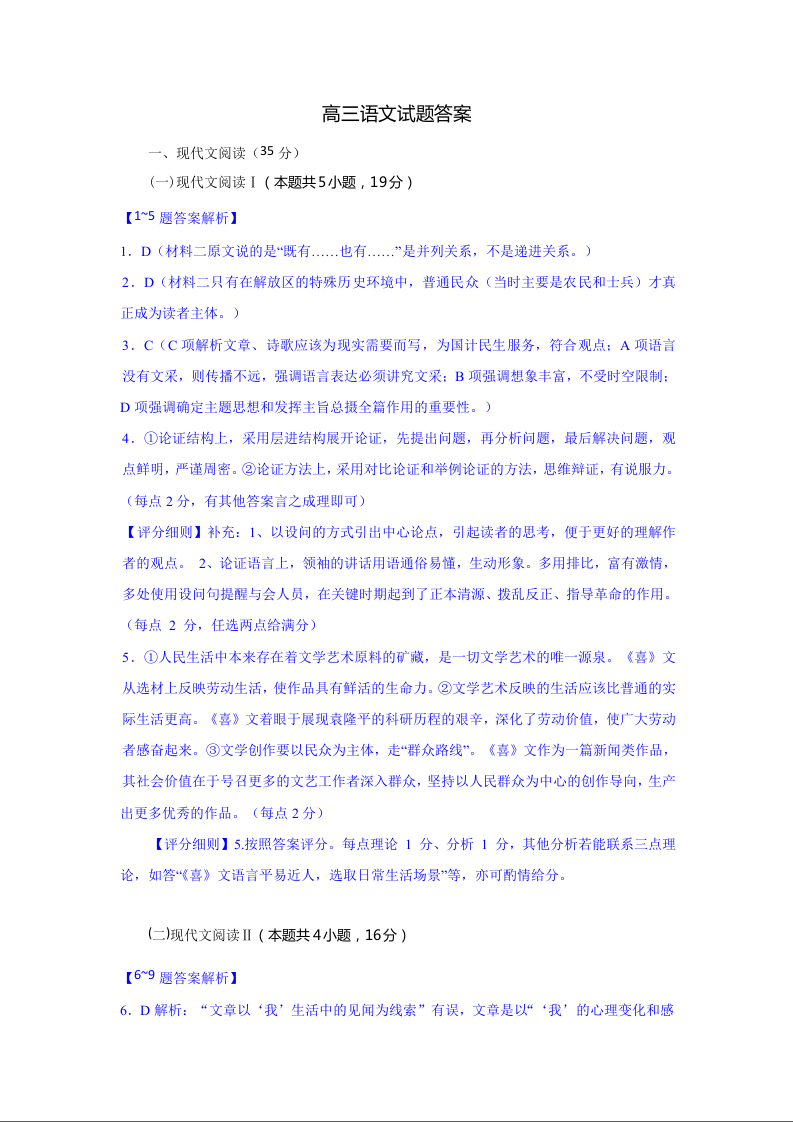 湖北省部分高中协作体2025-2026学年高三上学期9月联考 语文答案.docx