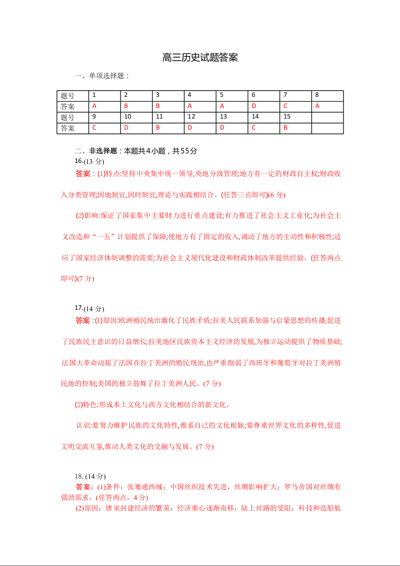 湖北省部分高中协作体2025-2026学年高三上学期9月联考 历史答案.docx