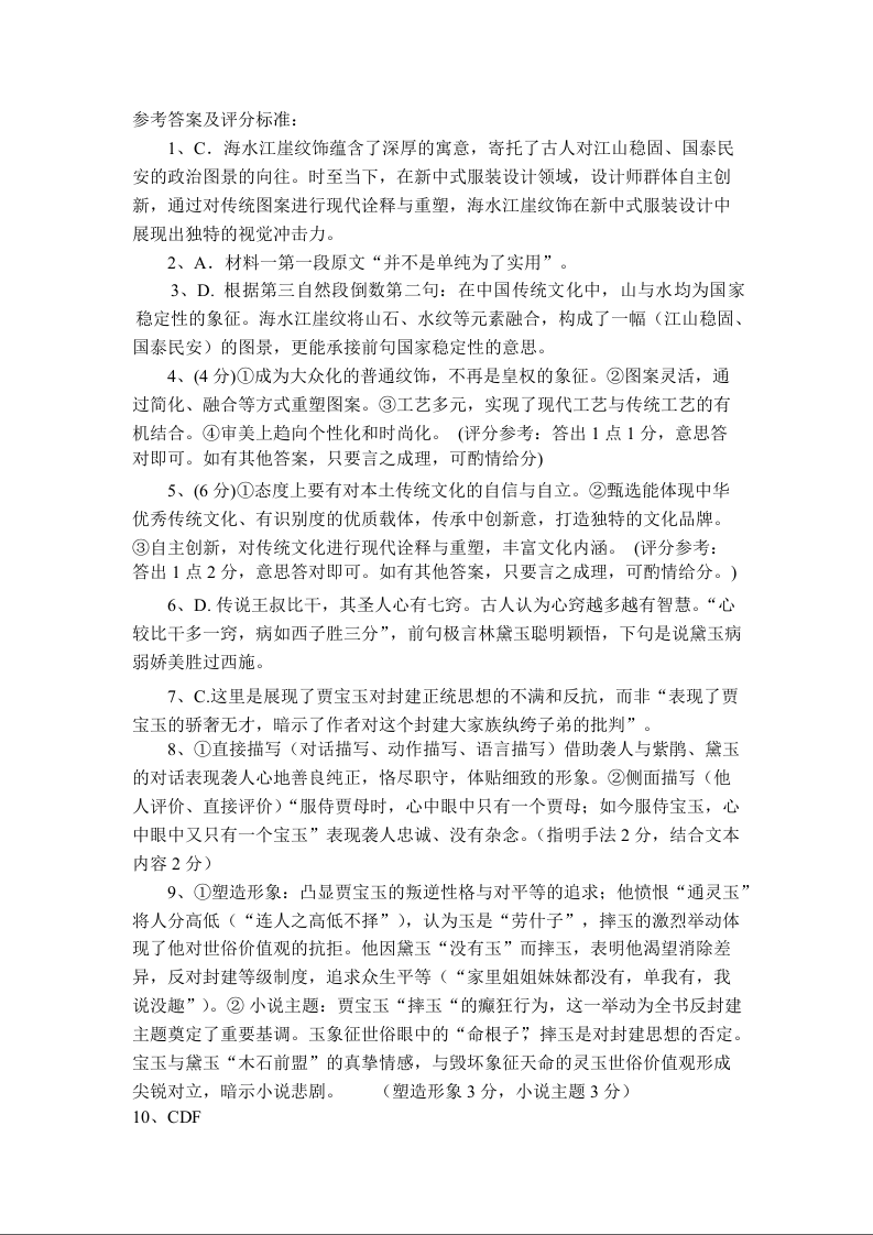 长治市2025-2026学年度高三年级九月份质量监测 语文答案.docx