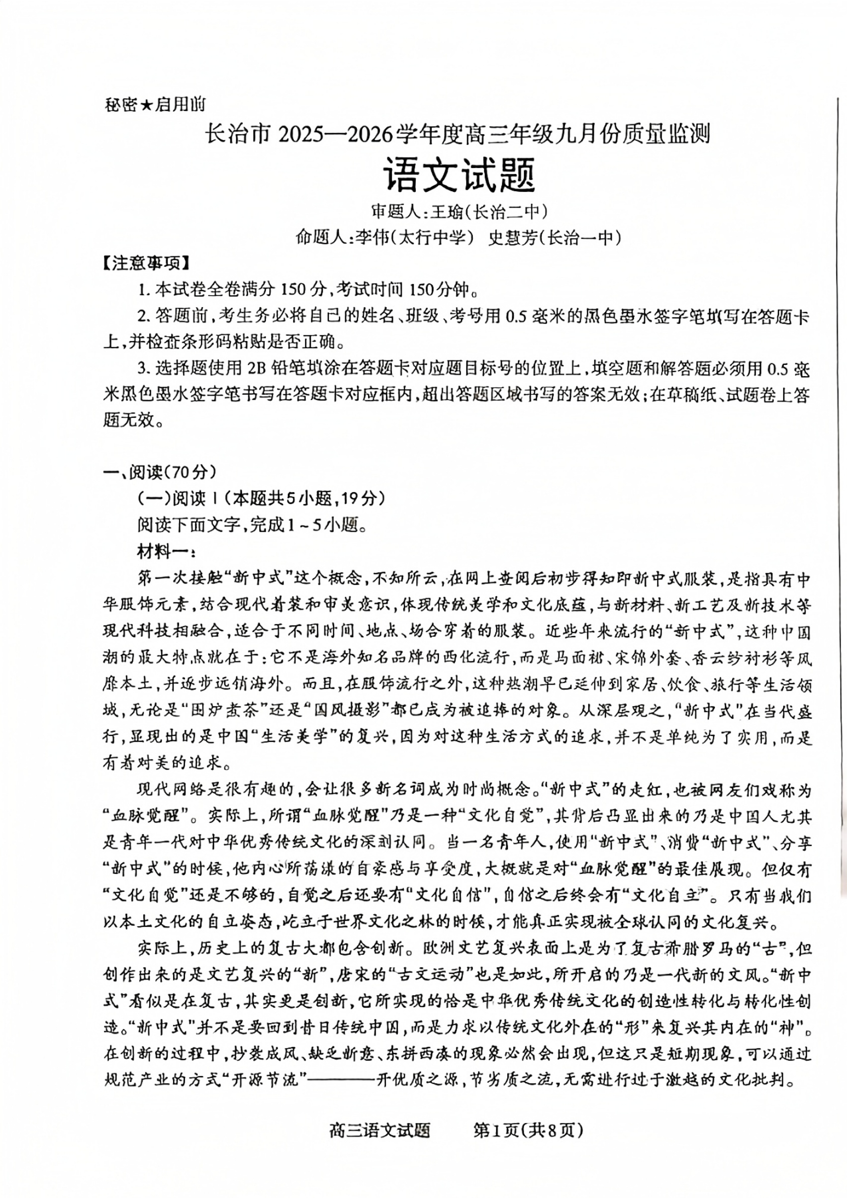 长治市2025-2026学年度高三年级九月份质量监测 语文.pdf