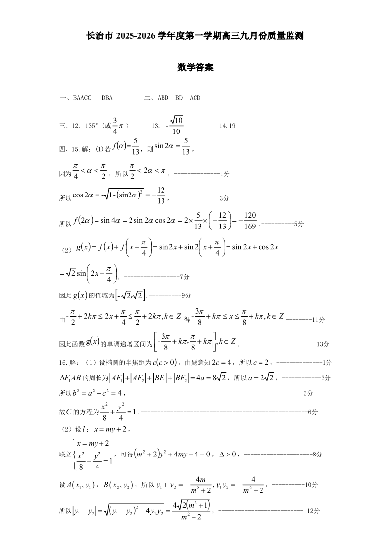 长治市2025-2026学年度高三年级九月份质量监测 数学答案.pdf