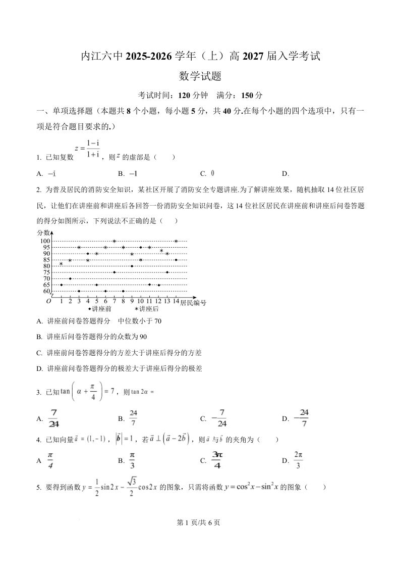 四川省内江市第六中学2025-2026学年高二上学期入学检测 数学.docx
