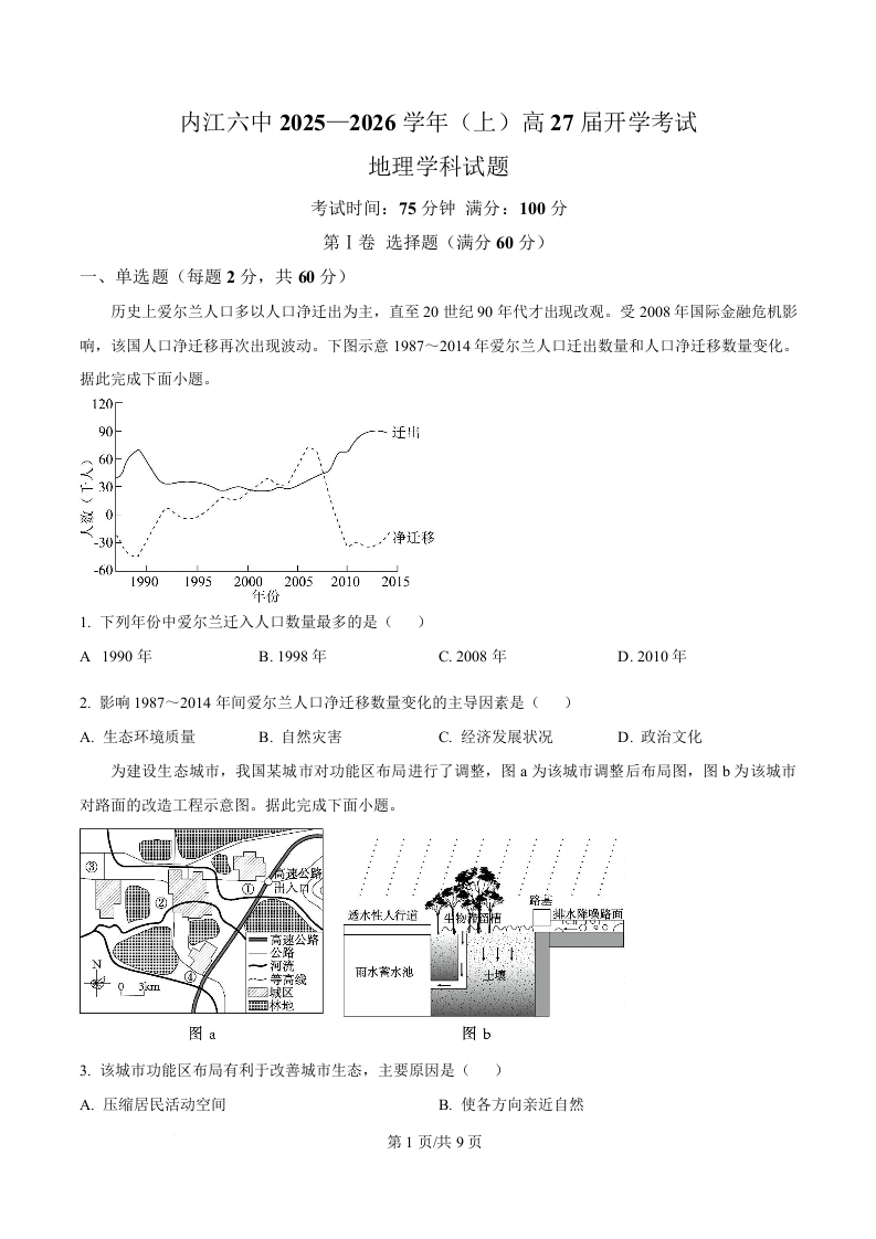 四川省内江市第六中学2025-2026学年高二上学期入学检测 地理.docx