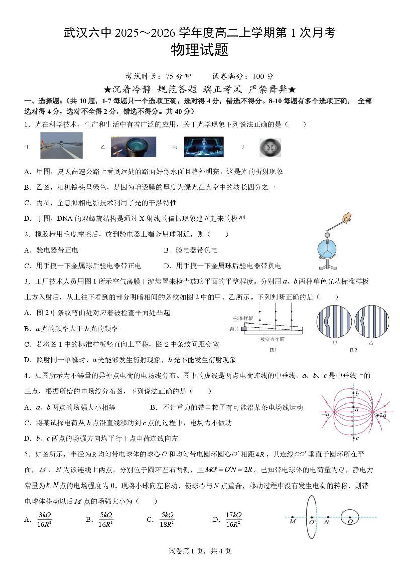 武汉市六中2025-2026学年高二上学期第一次月考 物理.pdf