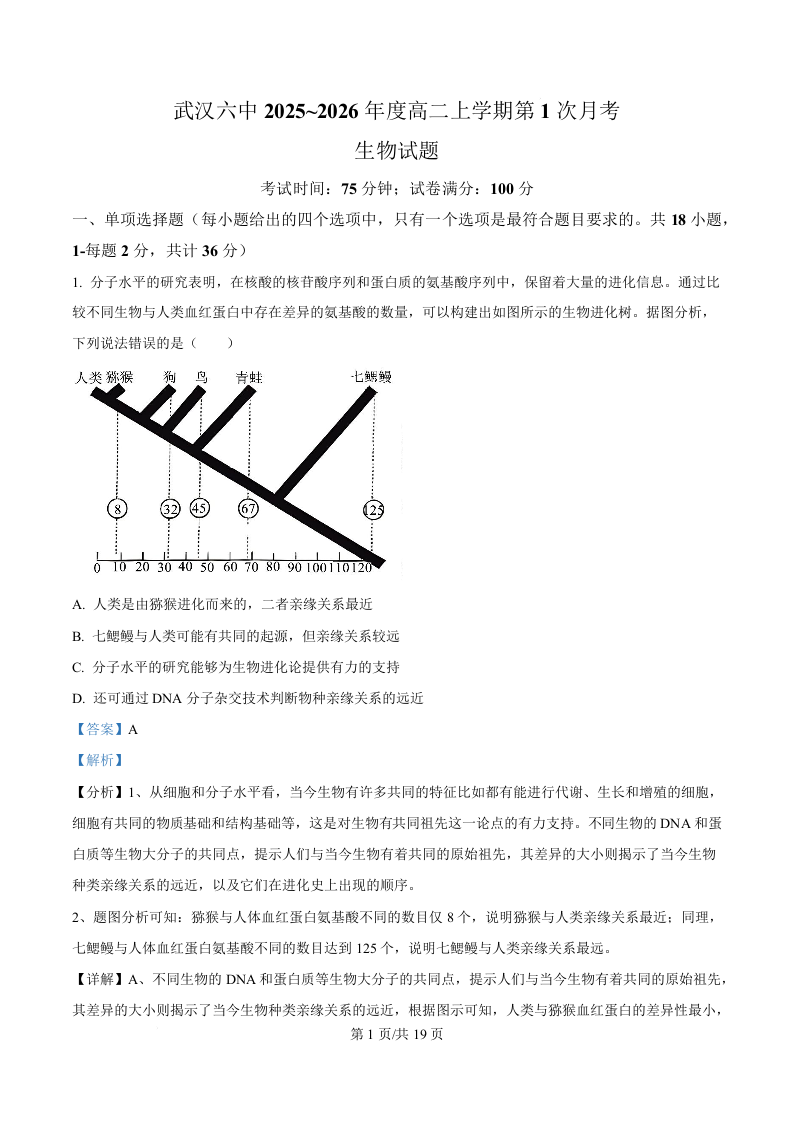武汉市六中2025-2026学年高二上学期第一次月考 生物答案.docx