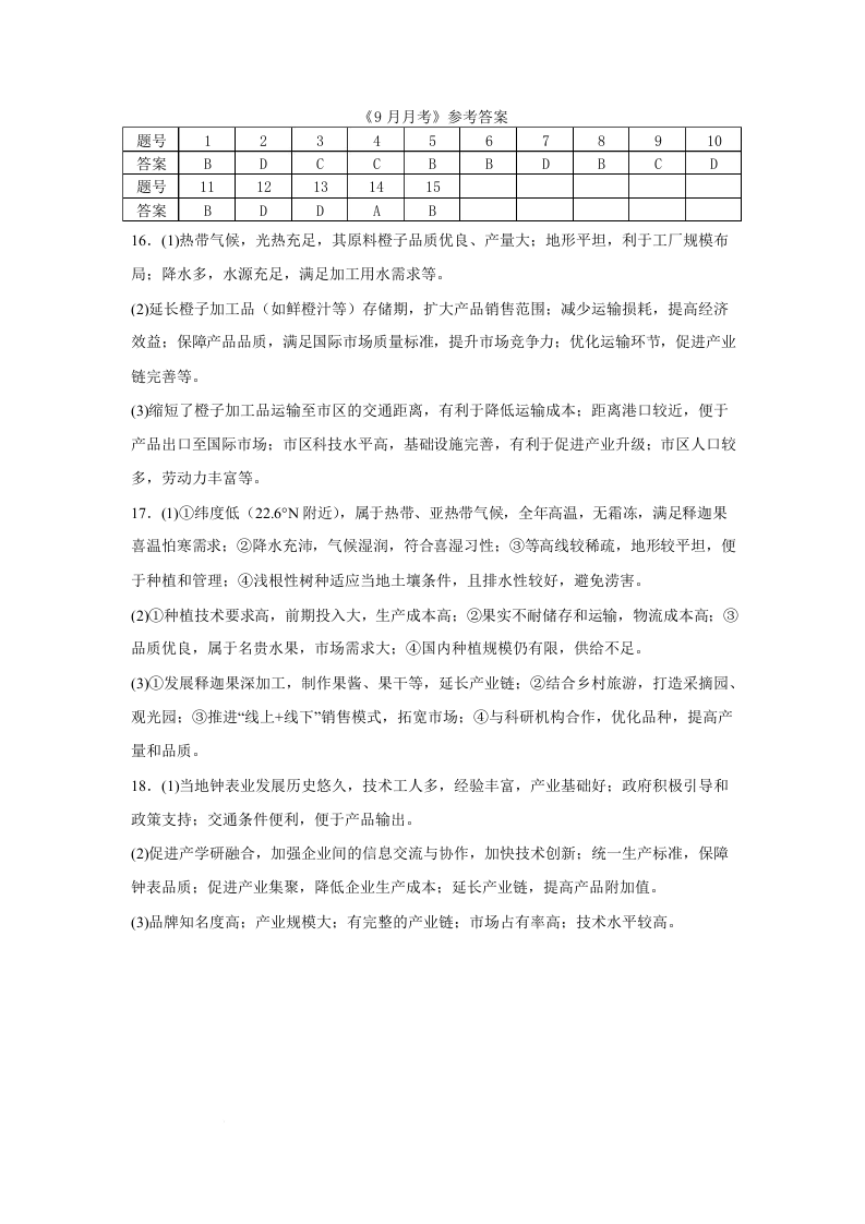 武汉市六中2025-2026学年高二上学期第一次月考 地理答案.docx