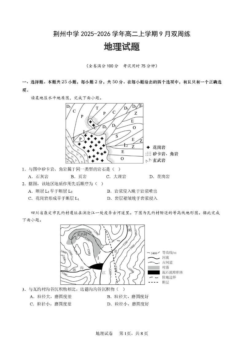 湖北省荆州中学2025-2026学年高二上学期9月双周练(月考)地理.pdf