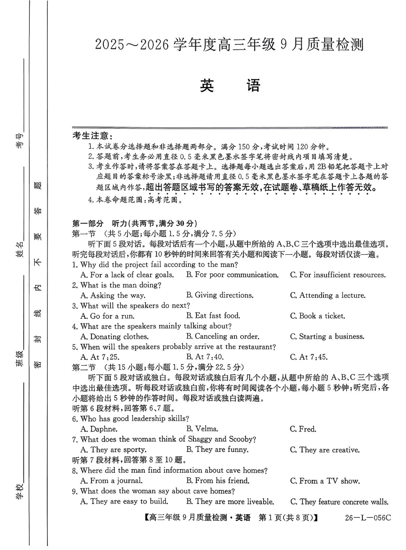 2025~2026学年度高三年级9月质量检测 英语.pdf