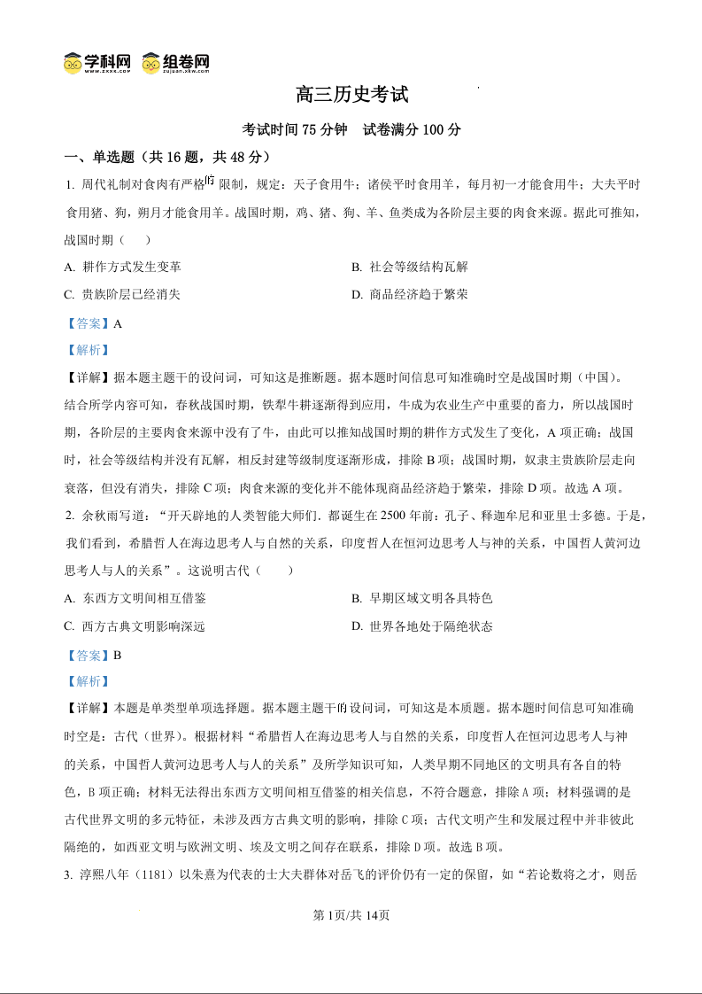 2025~2026学年度高三年级9月质量检测 历史答案.docx