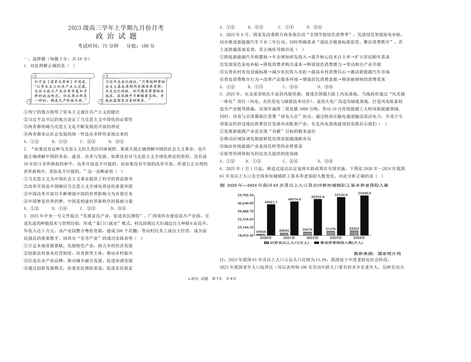 黑龙江省牡丹江市第一高级中学2026届高三上学期9月月考 政治.docx