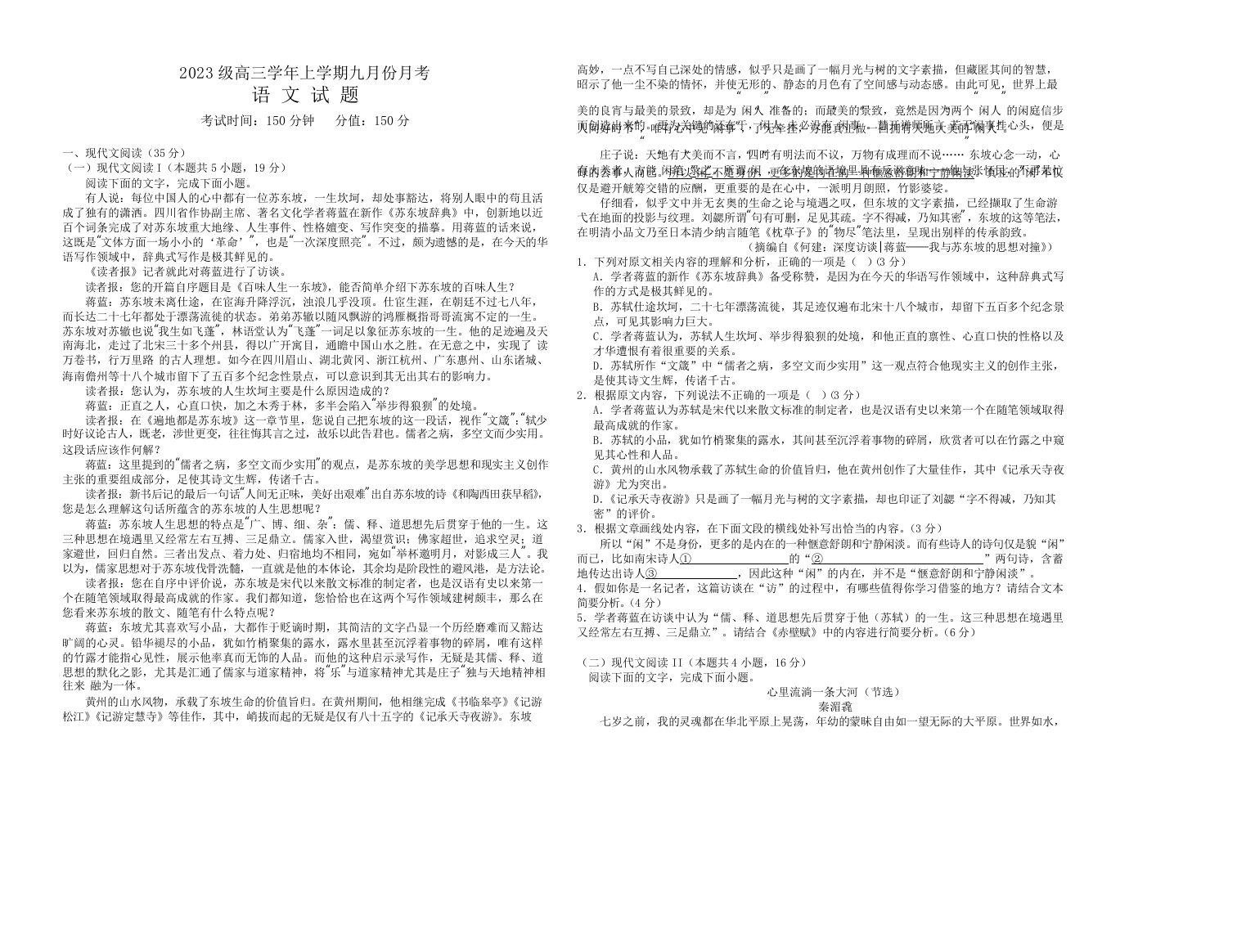 黑龙江省牡丹江市第一高级中学2026届高三上学期9月月考 语文.docx