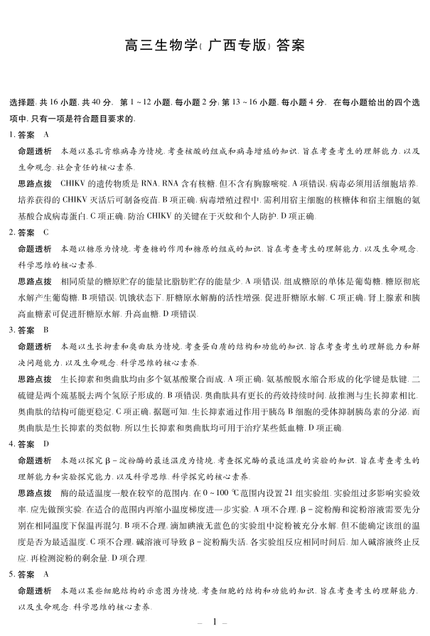 天一大联考·湖南省、广西省2025-2026学年高三上学期阶段性检测(二)生物(广西专版)答案.pdf