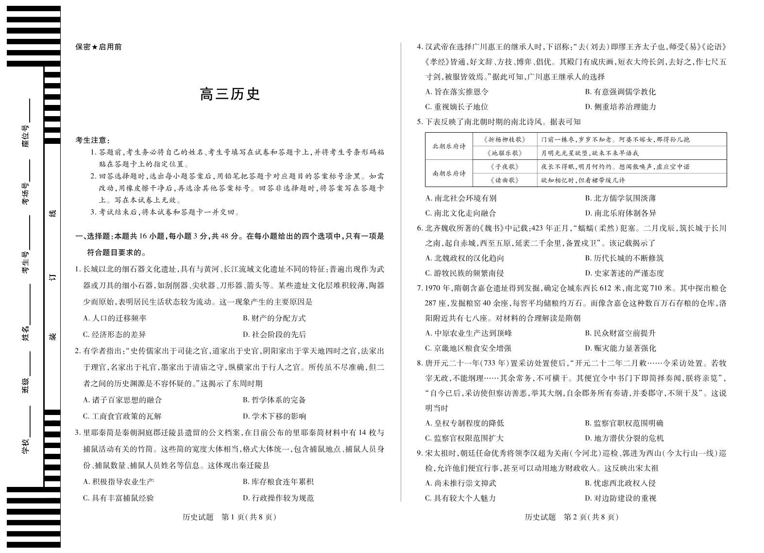 天一大联考·湖南省、广西省2025-2026学年高三上学期阶段性检测(二)历史(湖南专版).pdf