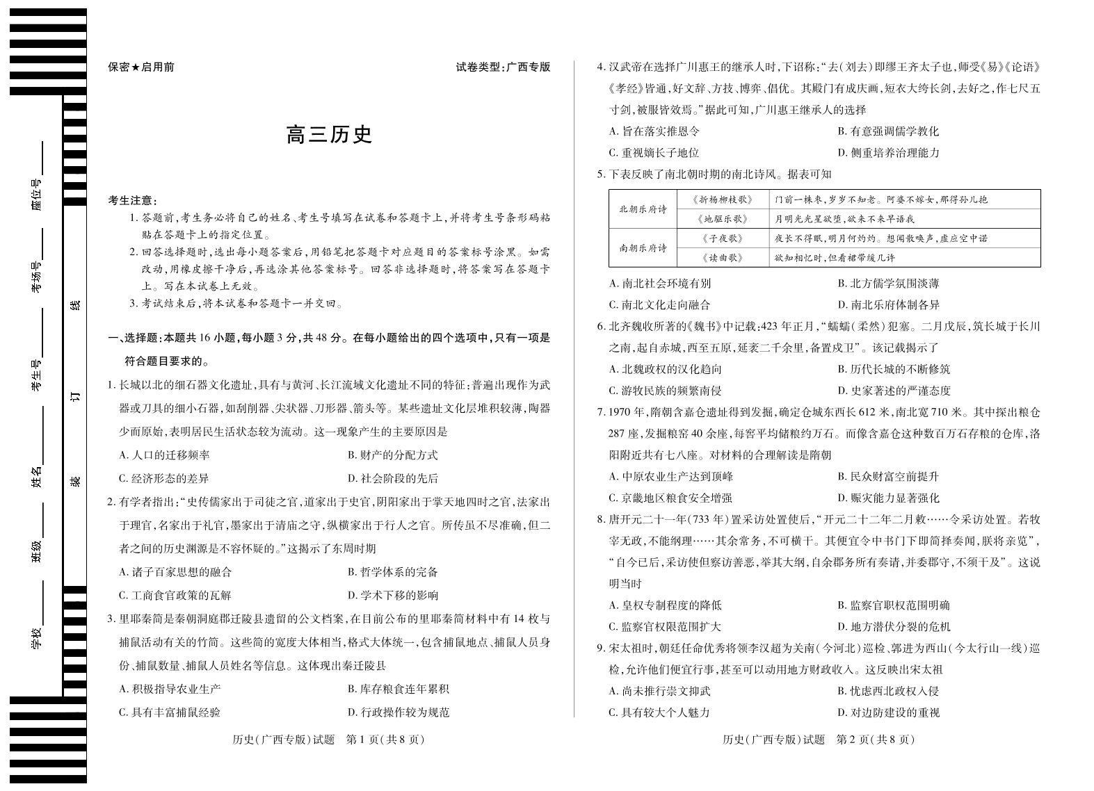 天一大联考·湖南省、广西省2025-2026学年高三上学期阶段性检测(二)历史(广西专版).pdf