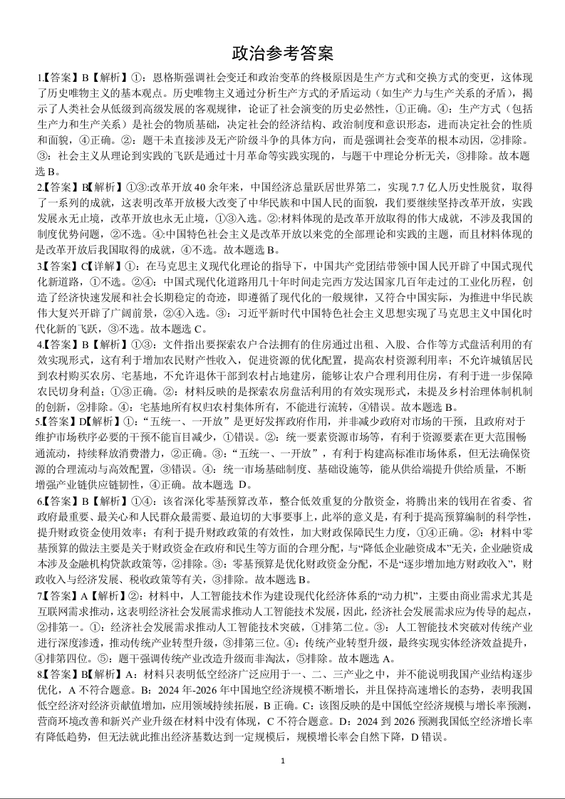 射洪中学2026届高三上学期9月第一次模拟考试 政治答案.docx