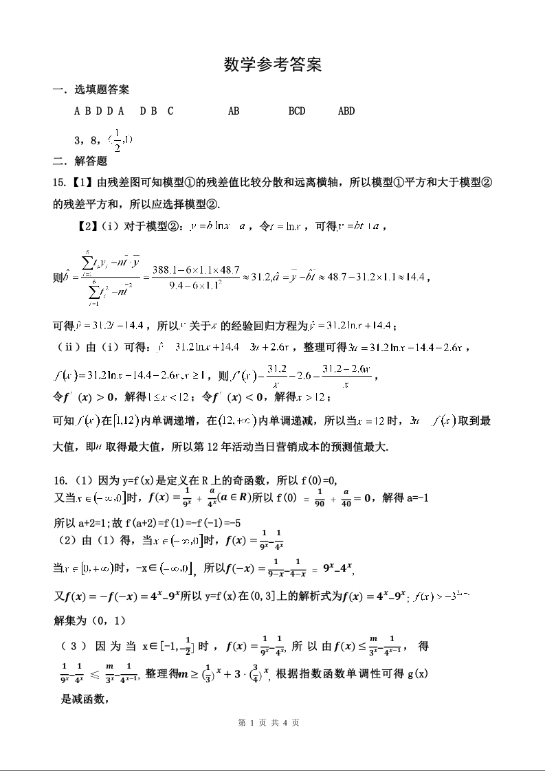 射洪中学2026届高三上学期9月第一次模拟考试 数学答案.docx