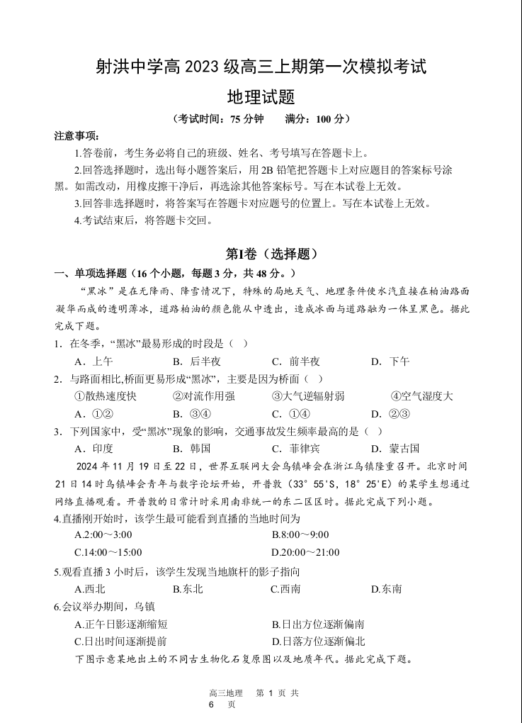 射洪中学2026届高三上学期9月第一次模拟考试 地理.docx