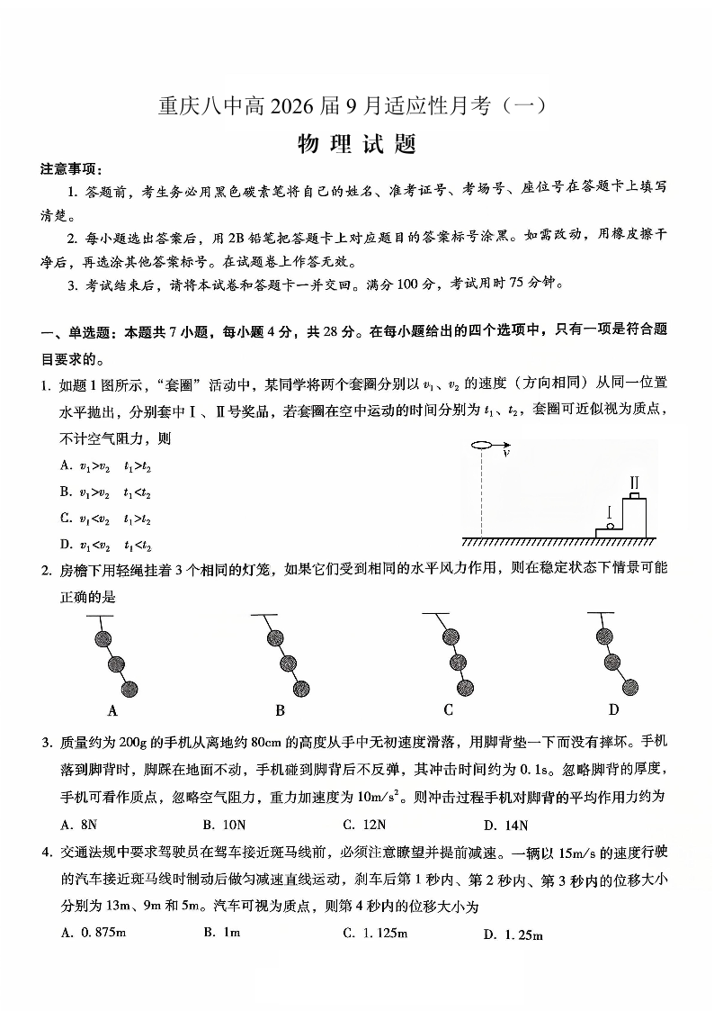 重庆八中高2026届9月适应性月考(一)物理.pdf