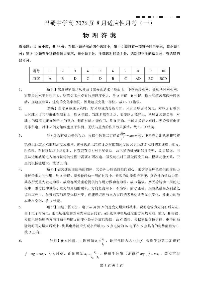 巴蜀中学2026届高考适应性月考卷(二)物理答案.pdf