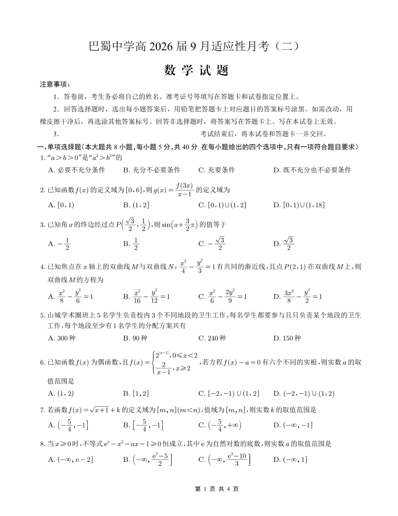 巴蜀中学2026届高考适应性月考卷(二)数学.pdf
