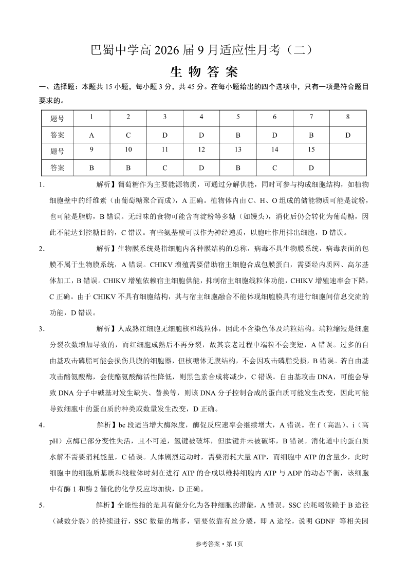 巴蜀中学2026届高考适应性月考卷(二)生物答案.pdf